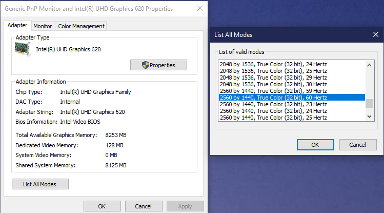 This could be different depending on your Graphics adapter, but the next step is click “List All Modes”. Pick your preferred resolution and refresh rate.